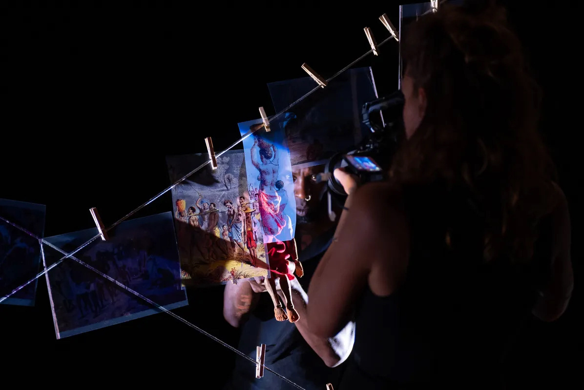 In ODO, Wensley Piqué portrays his encounter with a community deep in the interior of Suriname through models, an overhead projector, sand art, live cinema, and immersive soundscapes. In the Amazon, these people not only live in nature but also live with nature. The communities draw from the powers of the jungle and have a deep connection with it. They listen to their life guides: the 'spirits' of their ancestors. They believe that everything originates from a single energetic source that connects all things. To experience this profound bond, Wensley traveled to the village of Pikin Slee on Saramaccan territory. The images Wensley creates are filmed live and projected in various ways: over the body of the performer, the audience, onto objects, and walls. The use of shadow play, different light sources, and soundscapes enhances this experience, bridging the tangible and the intangible. Wensley Piqué previously created Granm’ma, a puppet show tribute to his grandmother, praised by both press and audience. As a creator, he uses his own experiences to tell stories of the African diaspora, with puppetry as one of his main disciplines. Credits Director & performer: Wensley Piqué Singing & performance: Damani Leidsman (Mushroom Mosis) Film: Ava Meijer Text: Emma Lesuis, Tolin Alexander Voice-over: Manoushka Zeegelaar Breeveld Composition: Marlon Penn Scenography: Eddy van der Laan, Yannick Verweij Lighting design: Bernd Wouthuysen Puppet maker: Matt Jackson Dramaturgy: Javier López Piñón Technical: Maarten Hietbrink Production: Annelies Hendrikse, Channa Begbie, Ann Hermelijn Assistant director: Rachel Besemer ODO is a co-production of Dawn Collective, Theater Bellevue & Theater a/d Rijn (affiliated with De Nieuwe Oost). With thanks to Gert van der Vijver and Hotel Modern Photography: Sjoerd Derine