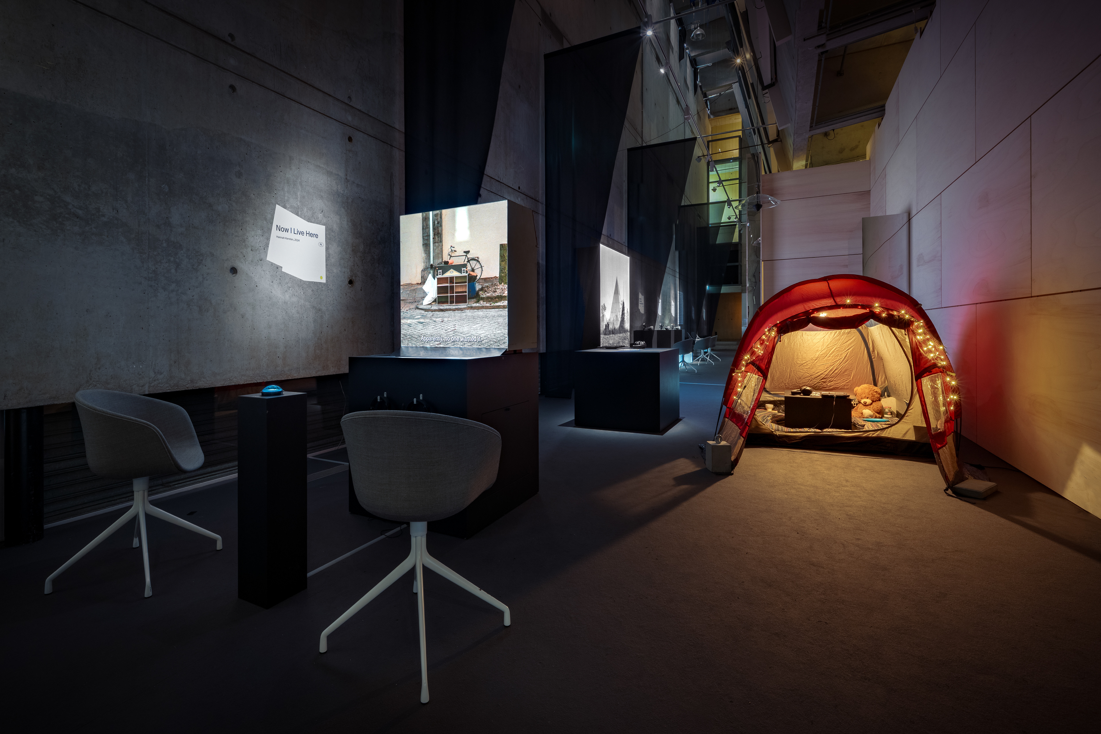 Realitiesⁿ is AFFR’s inaugural immersive media programme, marking a significant expansion of the festival’s scope. Bringing together projects across diverse media and formats, the exhibition explores how AR, VR and XR technologies transform how we conceptualise, narrate, and experience space. Immersive media continues a lineage of architectural tools of representation, from perspective drawings, axonometrics, and parametric volumes. Realitiesⁿ presents immersive media not as a novelty, but as a natural evolution in the architect’s toolbox, a set of technologies that offer unprecedented modes of storytelling, embodiment, and empathy. The exhibition unfolds in two sections: Traces, which engages with real-world sites and histories through documentation and reconstruction, and Encounters, where speculative narratives invite reflection on memory, identity and belonging. Installations Energeia (Ugo Arsac, 2022), Address Unknown: Fukushima Now (Arif Khan, 2024), Lagares do Alvará (Pedro Gil Farias & Hugo Pilate, 2024), 21-22 China & 21-22 USA (Thierry Loa, 2023), The Tent (Rory Mitchell, 2024), Now I Live Here (Hannah Kersten, 2024) and Capital City (Elian Somers, 2022). Credits: Festival director: Herman van Dongen Head of Programming: Cristina Ampatzidou Exhibition design: Yannick Verweij Concept & graphic design: Studio Beige Exhibition Technical Support: Indyvideo, Upscale XR, Nieuwe Instituut Exhibition Installation: Bouwko Landstra Immersive Media Project Management: Giulia Di Pietro Photography: Sander van Wettum