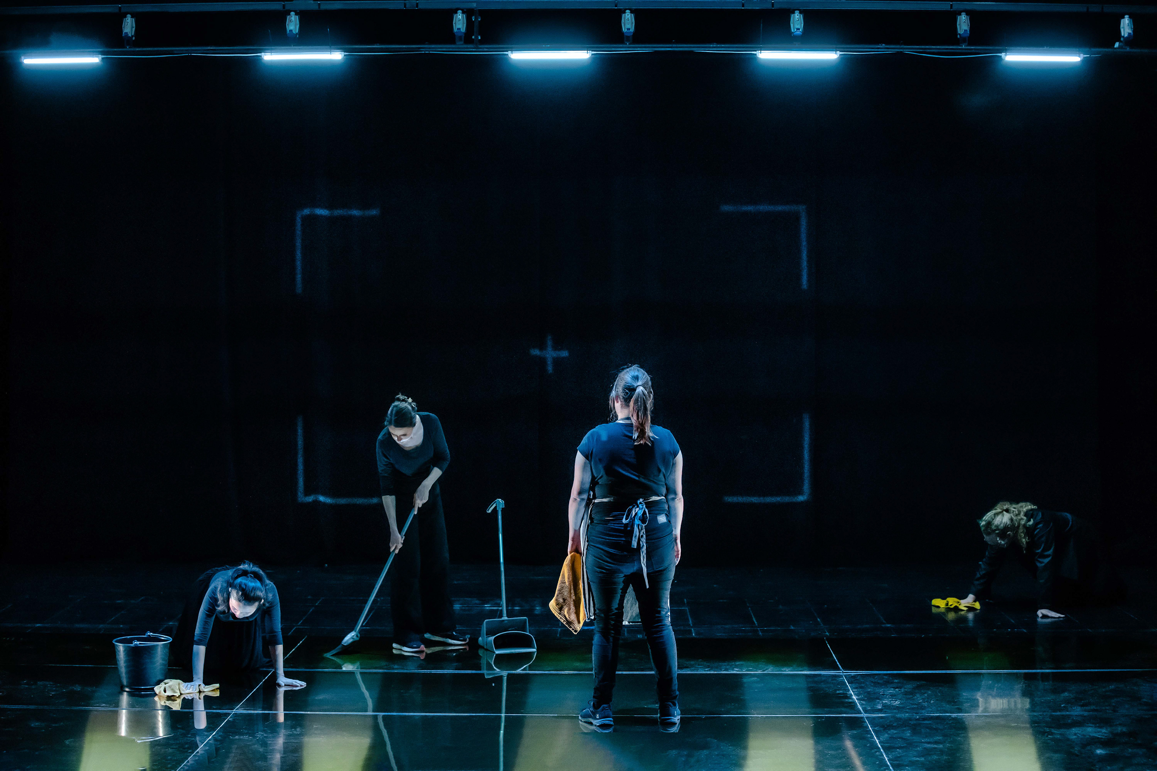 The East Complex is a three-act dramatic work consisting of an opera within a drama. This is the final project of both Riles Walsh (Mmus Composition, Royal Conservatory Ghent) and Stefan Aleksić(MA Drama, KASK School of Art, Ghent). They are closely collaborating with scenographer & theatremaker Yannick Verweij and an international- and diverse group of artists, students and young professionals from various conservatoires and art schools. The story revolves around Agnieszka Petrowska, a cleaner who escaped destitution and war in her hometown in the East, and now struggles to make a living in her newly adoptive country. Through moments of reflection, she imagines herself as a powerful god-like being in search of the perfect physical manifestation of the Western ideal. Aleksić's text pays homage to the female members of his family who migrated from Bosnia to Switzerland and spent their lives cleaning, ending up exhausted, ill, and disfigured. He merges his own position as an immigrant in Belgium with his mother's experience of working illegally as a cleaner in the West. This work is Riles Walsh’s alunissage - a fractal synecdoche of inhabitation. It is a tribute to a lost family member, a reflection on identity and the struggles of existence. The 'East Complex' delves into the complex and interrelated systems that govern our lives. What becomes of the people, heavily utilized by a system, that are often overlooked by a majority? Performances were held at Opera Ballet Vlaanderen and Minardschouwburg in Ghent, Belgium. Credits Artistic Team: Composition, Sound Design, Libretto Adaptation: Riles Walsh Libretto & Dramaturgy: Stefan Aleksić Stage Direction, Scenography, Video Design, Graphic Design: Yannick Verweij Conductor: Ronan Whittern Film Director: Liv de Coninck Associate Video Design: Joske Commandeur Costume Design: Leonidas Kanavetsados Production- & Stage Management: Gijs de Jonge Sound Technician: Daan Vanreybrouck Cast: Emma Nelson, Leonor Biu, Moa Karlsson, Katie Koester, Noriko Yakushiji, Alberto Martínez, Thomas Vandenabeele, Maria Eichler, Anne-Laure Dollie, Florencia Molinero, Vahe Harutyunyan Instrumentalists: Yan Rui, Ostap Bachynskyy, Jose Usma, Daniel Aztatzi, Louis De Backere, Wouter Willems Photography by Yannick Verweij (portraits) and Danny Kaan (stage photography)